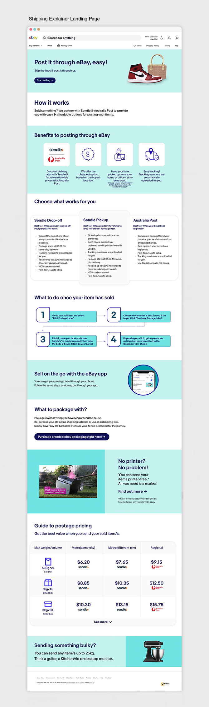 The challenge here was taking this improved look and having it remain effective with the large amounts of information that eBay needs to communicate to sellers. This was achieved through simple icons and effective use of white space in between the bright contrasting colours. The aim was to create a balanced flow through the landing pages that was easy to follow and didn't show you too much at one time.