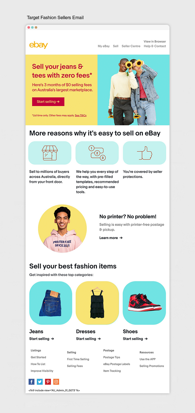 For this project I took a look at some of the newer platforms and looked at how we could improve on eBay's outdated and struggling C2C brand. I moved away from the flat colours and corporate images they were using and focused on bright engaging colours, animated personalities and products that people might have lying around ready to resell.